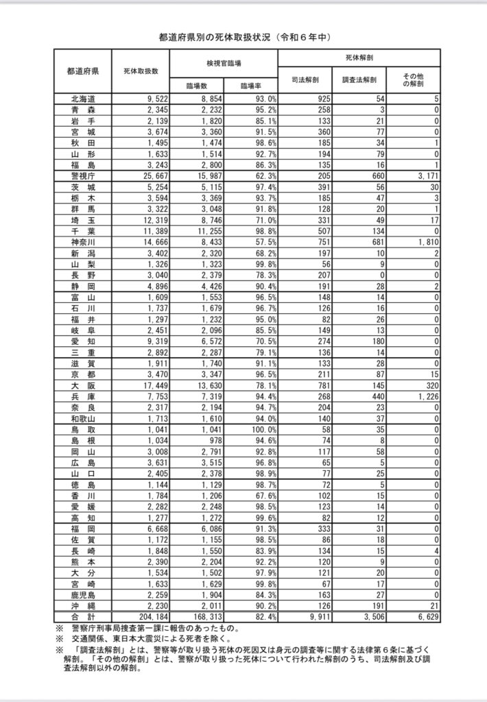 • 警察が扱った死体のうち